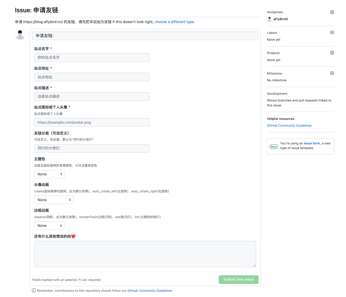 - 我并没有写友链申请的任何文档,更别提那些字段细节了