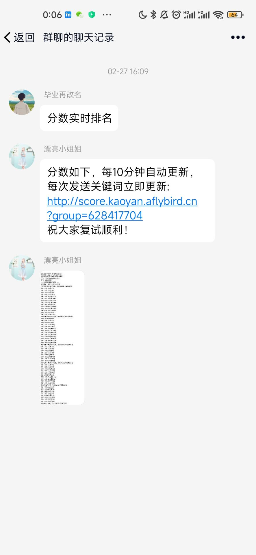 但现在学校一般不公布考研分数排名,所以我写了一个基于 QQ 群名片的考研分数统计机器人。